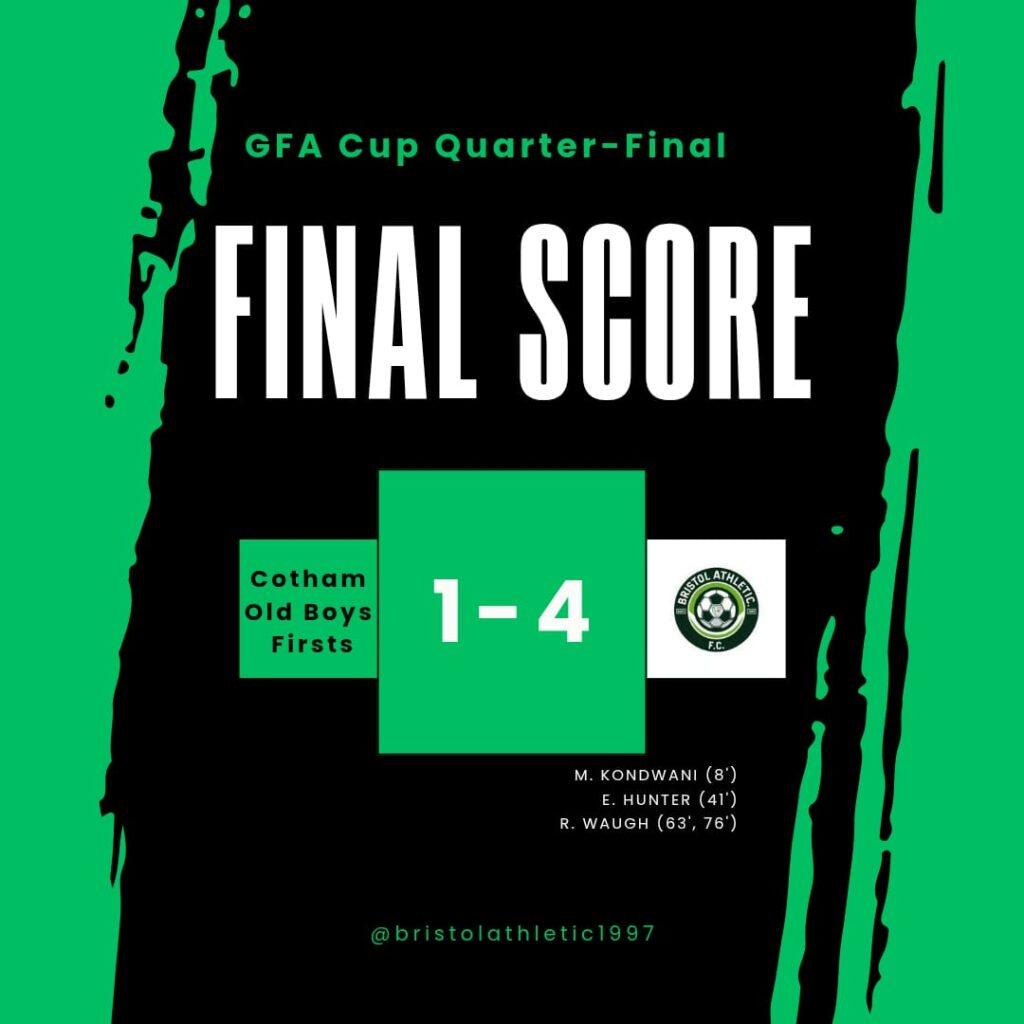 Bristol Athletic continued their outstanding run of form with an emphatic 4โ1 away victory over Cotham Old Boys Firsts at The Downs in Clifton, securing progression to the GFA Cup Primary South semi-finals.