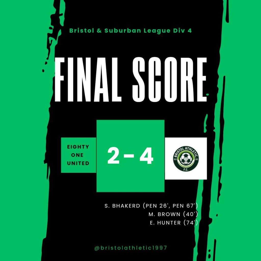 Bristol Athletic produced a huge statement away from home with a hard-fought 4โ€“2 victory over league leaders Eighty One United at Hursley Lane, Publow, in the Bristol Suburban League Division 4. In a top-of-the-table clash, the win moves Athletic to within three points of Eighty One United with a game in hand and firmly in the title conversation.